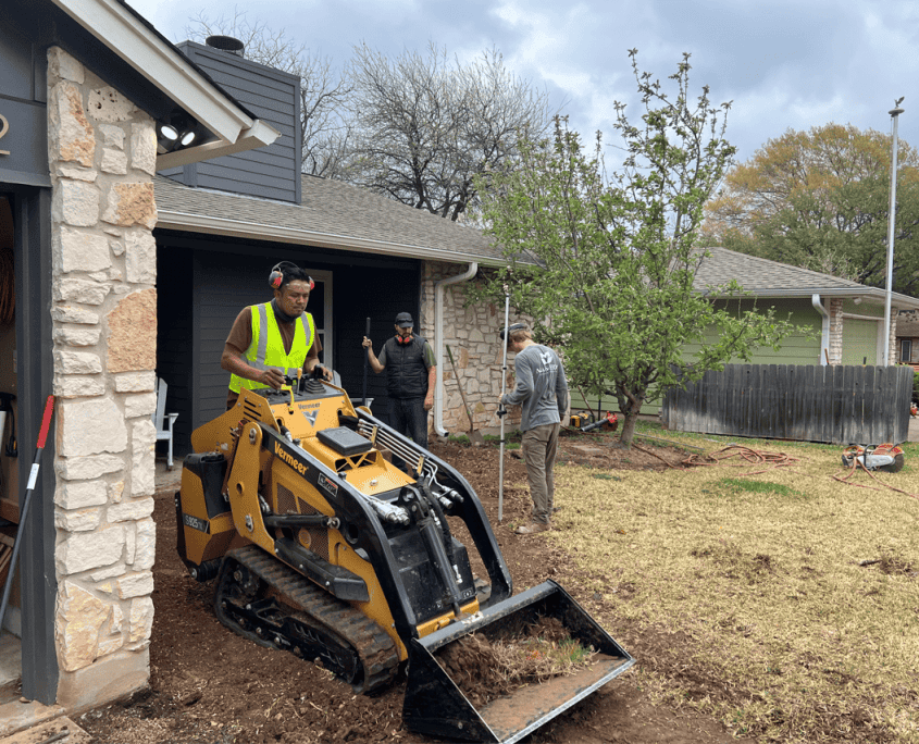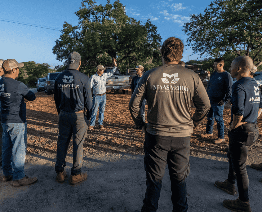Other underground conditions also influence landscaping prices. Not a day goes by without Maas Verde crew members excavating — and when they have to break through stubborn kaliche or limestone, it adds time.